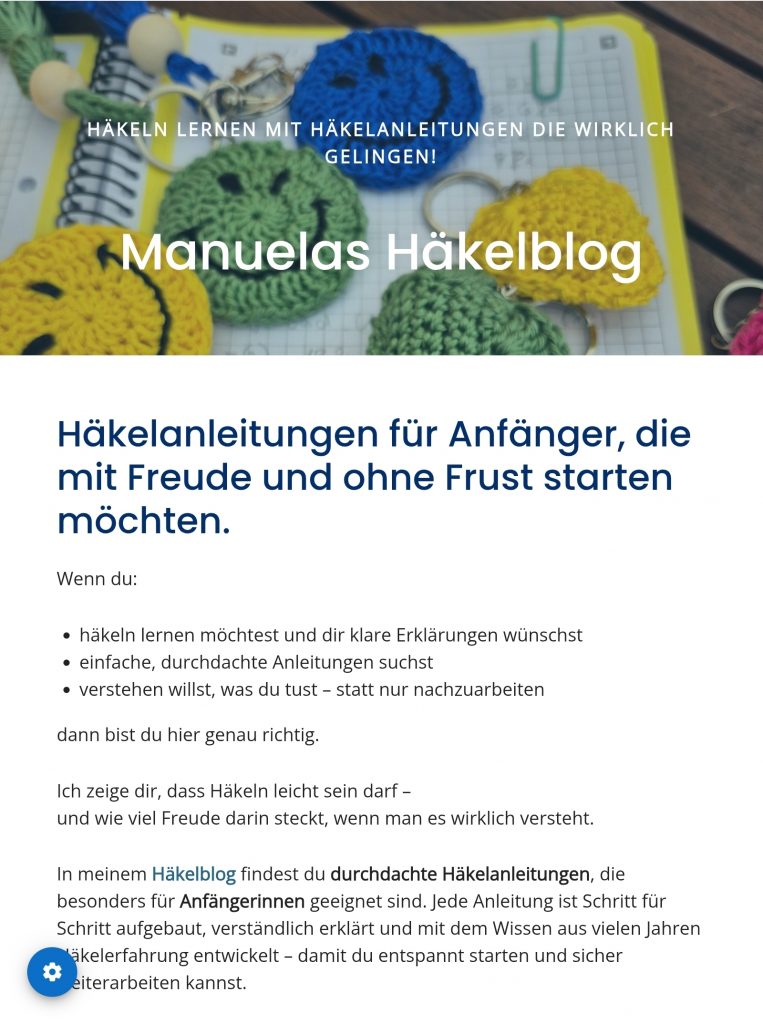 - Der Blog soll wachsen und Raum für Wissen, Erfahrungen und hilfreiche Inhalte rund ums Häkeln und mein Business bieten.