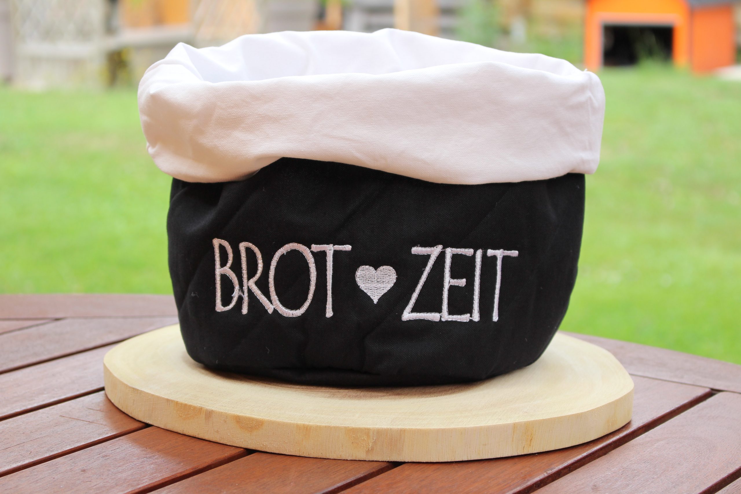 2 in 1 Brotkorb mit Zuziehkordel, uni schwarz weiß „Brot-Zeit“