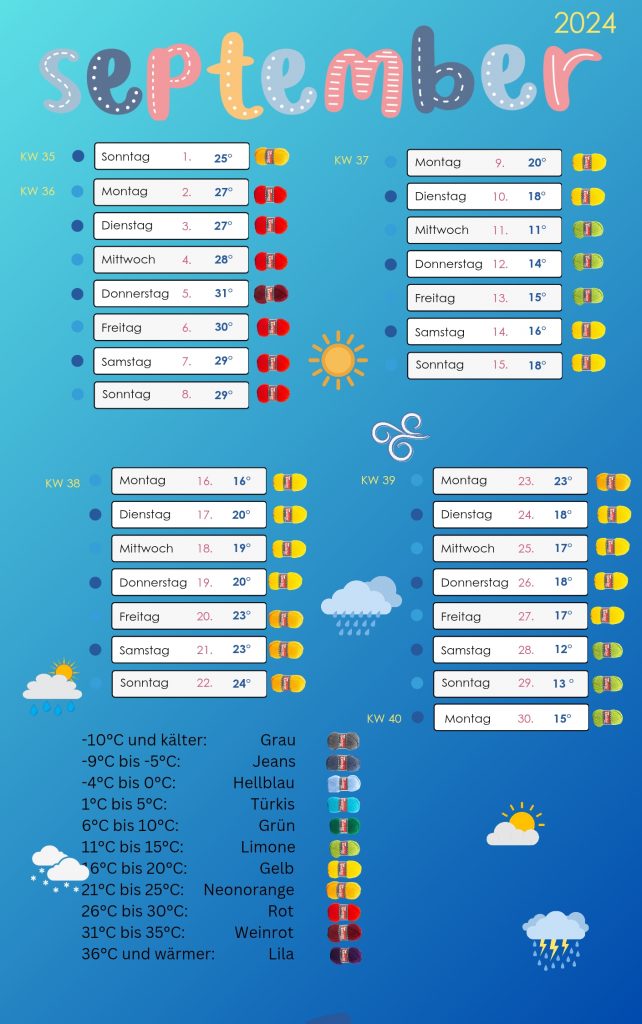 Eine Temperaturdecke ist ein Häkelprojekt, das sich über ein ganzes Jahr erstreckt und sich ideal eignet, um Häkeln zu lernen oder Häkelwissen zu festigen. Jeder Tag bekommt eine eigene Farbe, abhängig von der Temperatur. Entweder häkelst du täglich eine Reihe oder arbeitest mehrere Tage gesammelt nach – beides ist völlig legitim. Am Ende entsteht eine Decke, die den Temperaturverlauf deines Jahres widerspiegelt und gleichzeitig zeigt, wie sich deine Häkelroutine entwickelt hat.